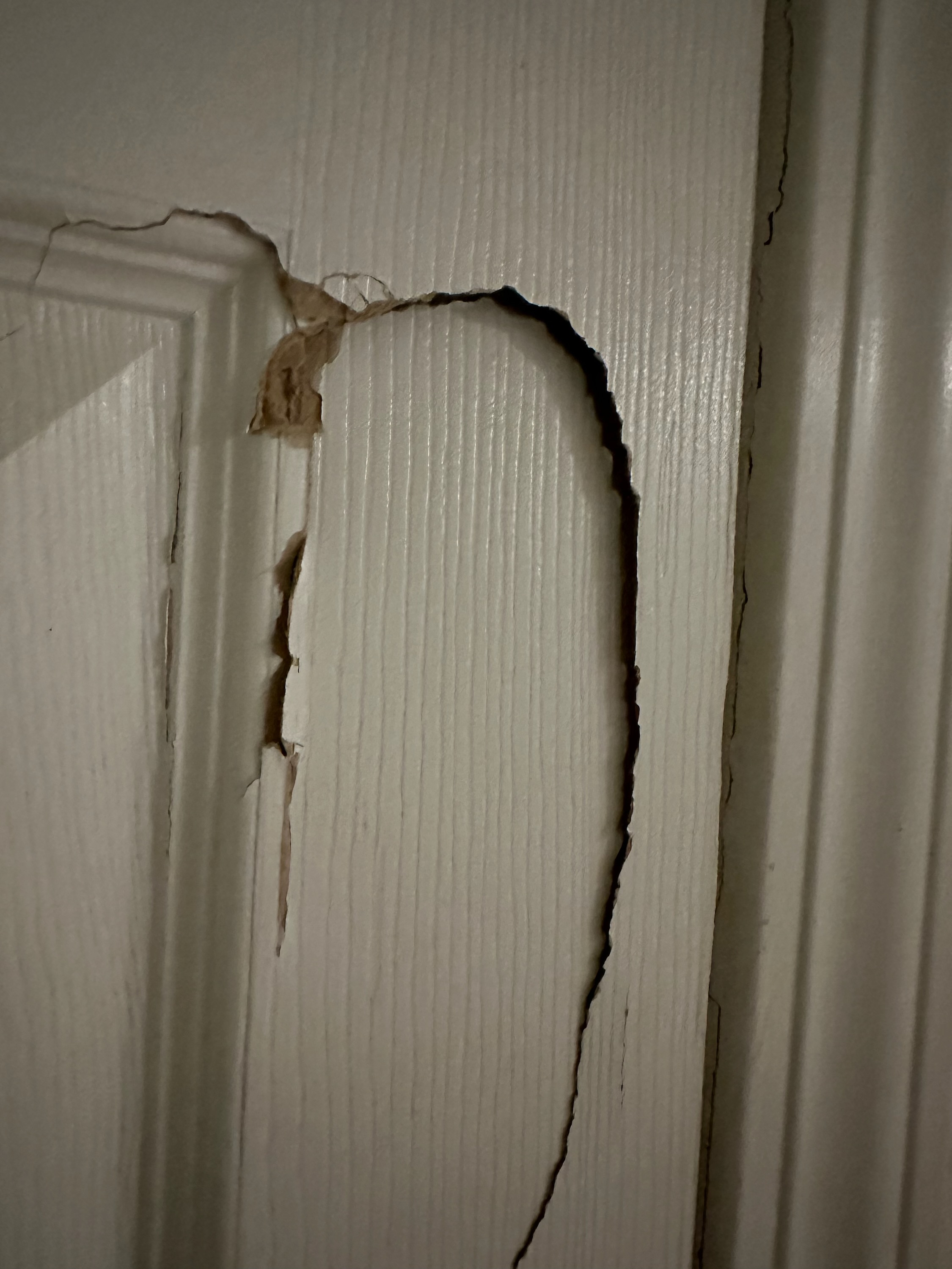 The master bathroom shower it was nothing major it's. Fix. In the bathroom from the hallway we higher company to fix it because they never get back to us..