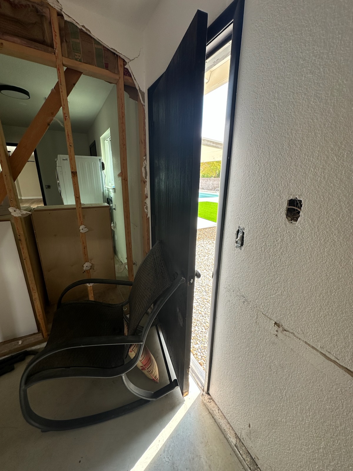 Ok installing drywall in all the missing spaces and applying paste and texture and paint and installing the door would be $1900 in all that with materials and labor