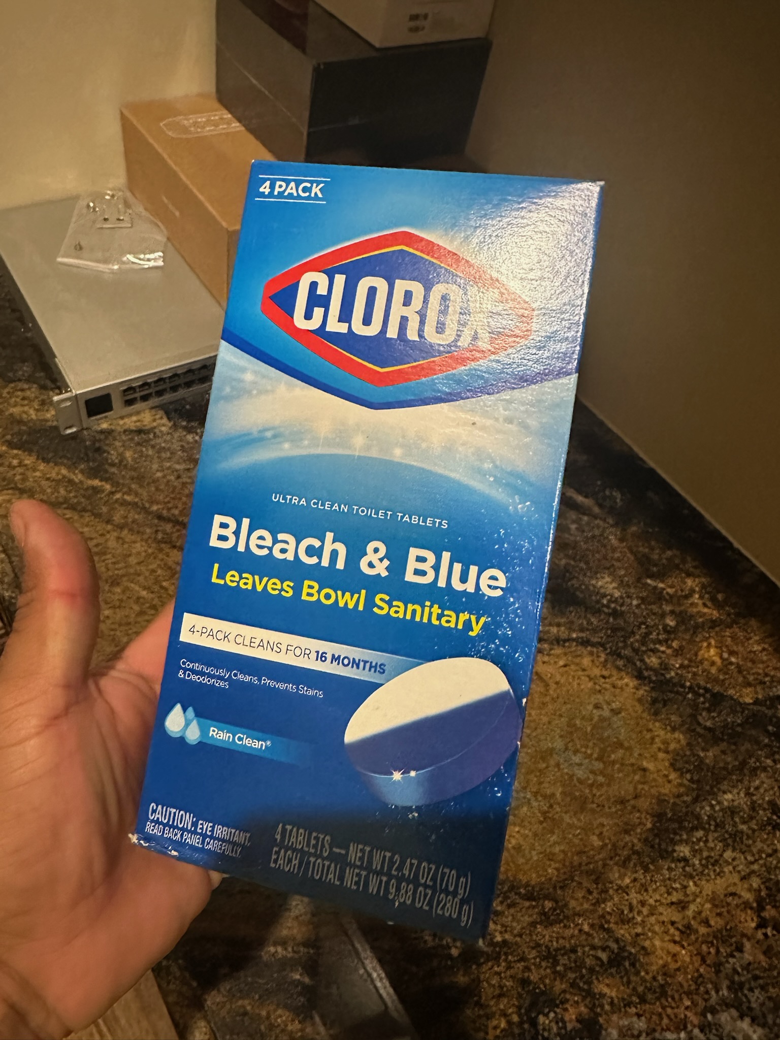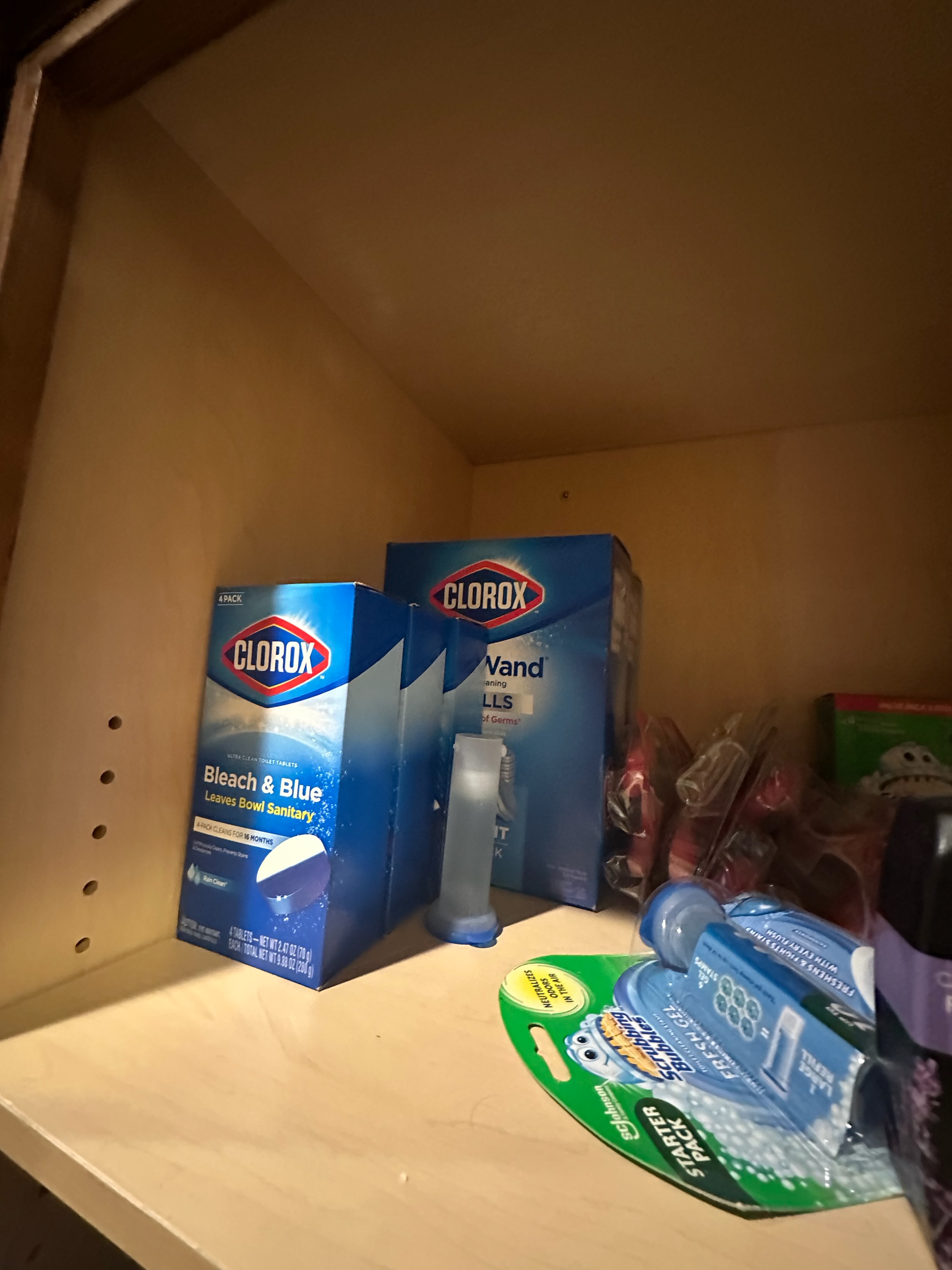 Creo que los limpiadores de inodoro que encontraste son de las personas que vienen a limpiar. Mejor no los tomes, porque seguramente los van a necesitar o los van a buscar.