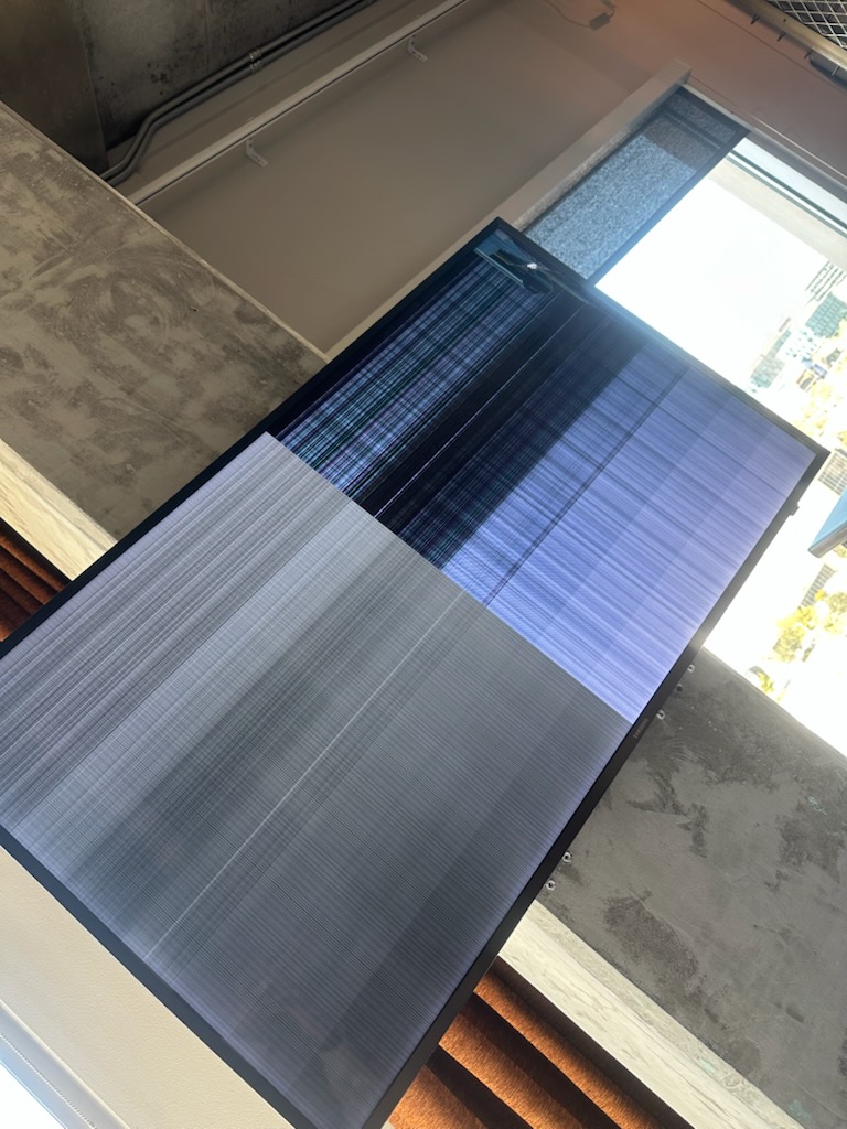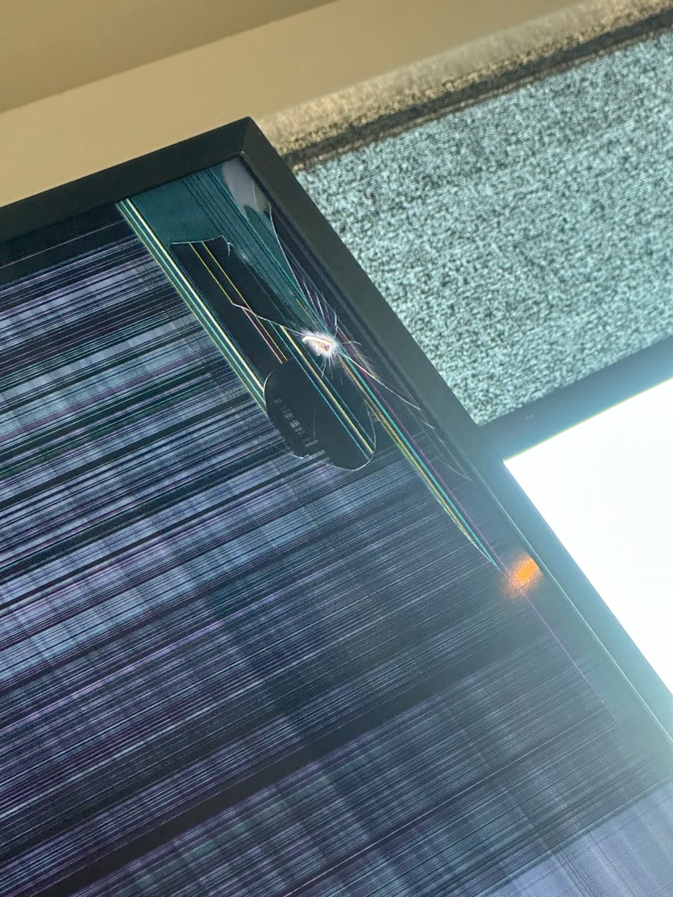 Wow that must have happened when it was moved around. You can't hardly see it when tv is off but it's bad when turned on