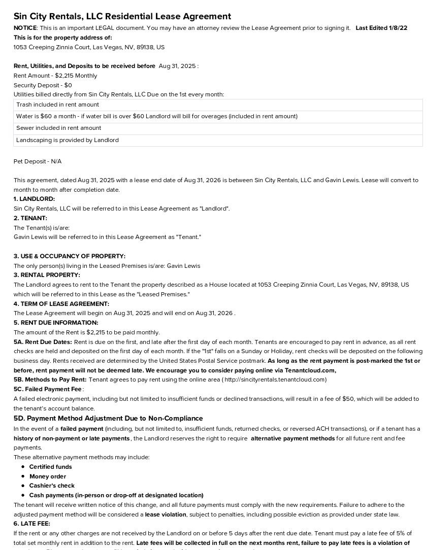 Sin City Rentals LLC. - company name